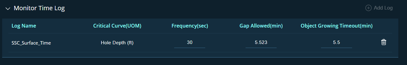 This section contains the following fields that allow the user to configure the Time log.