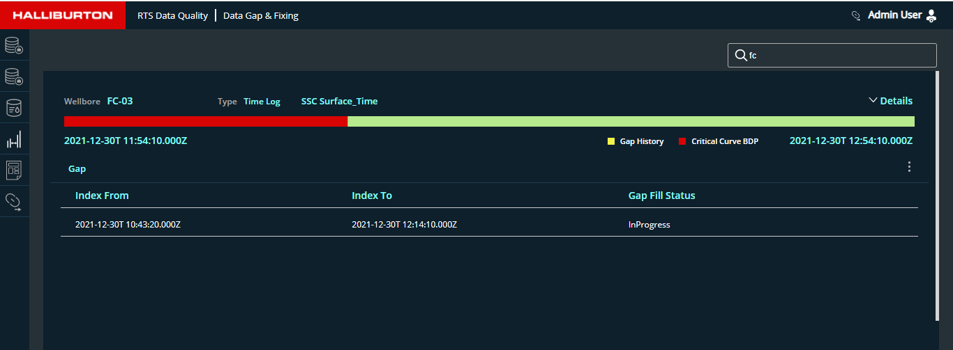This column will display the data Gap fill status with count of each wellbore to be