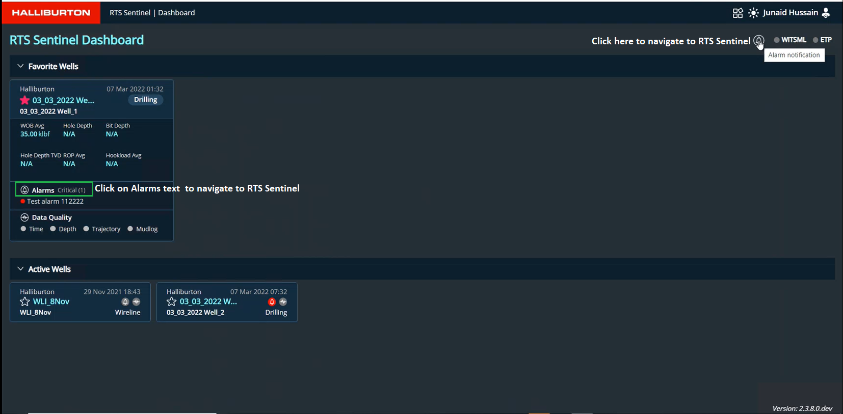 When a user navigates from the dashboard to the RTS Sentinel application, they are sent to the
