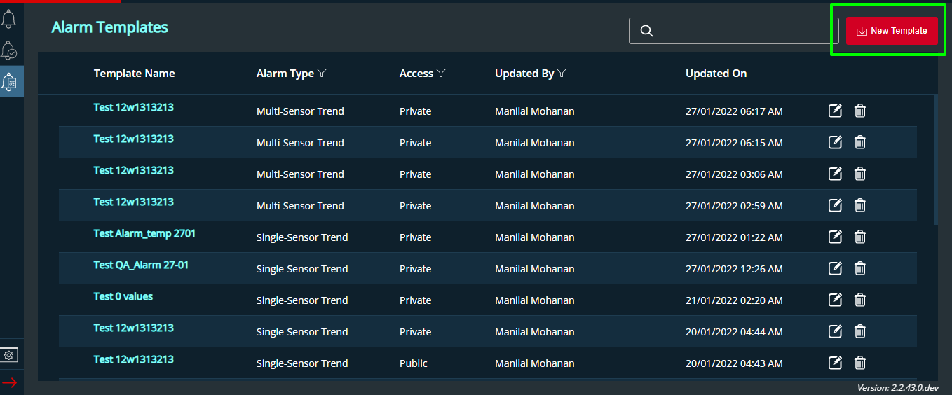 Custom alarm templates can be created here which will aid the users in configuring or customizing alarms