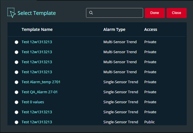 Alarm templates can be used to create new alarms. By selecting a template, you can quickly configure an alarm.