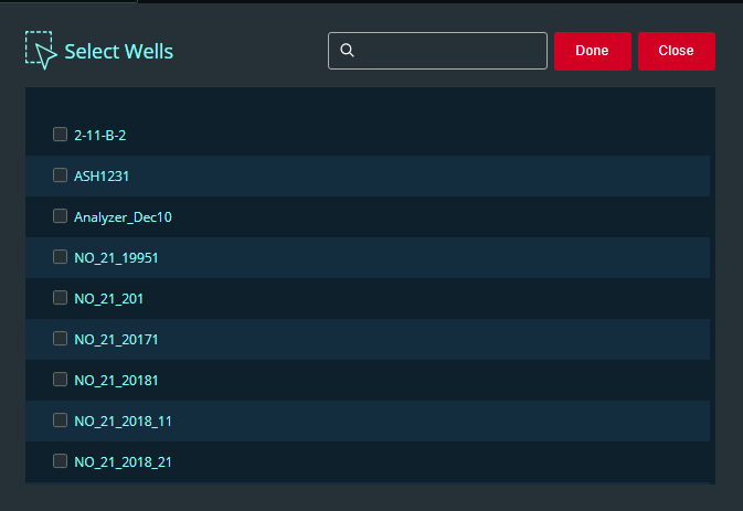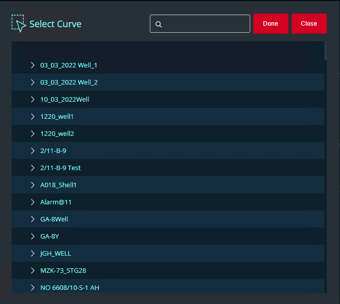 Any well can be marked as a favorite well by clicking on the star icon available on each card in the active well section. Onclick of the star icon the well will be moved to the section of the Favorite wells and displays the curves associated with the service category of the well.